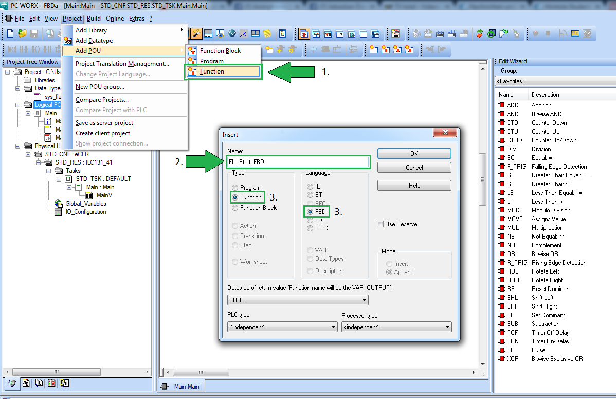 3. Make sure that the Type is "Function" and the Language is "FBD"