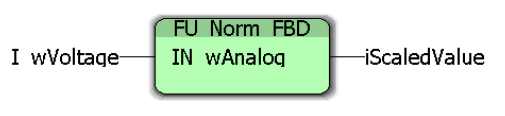 Add a function with the name FU_Norm_FBD to your project tree. This function is to scale an analog value provided by an analog input module according to the following scheme: